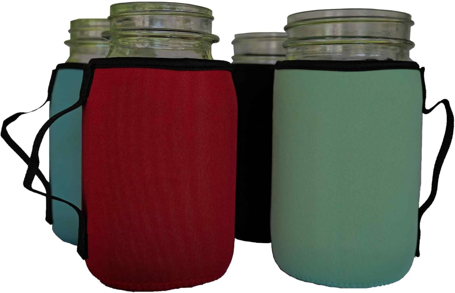 Mason jar Sleeves for Wide and regular mouth 32oz Quart jars 4 pack. Red, Black, Blue, Teal.